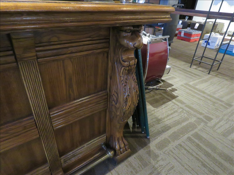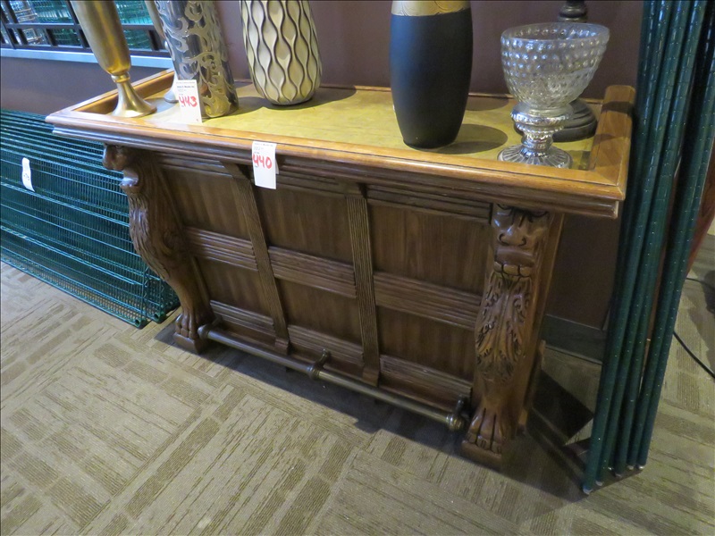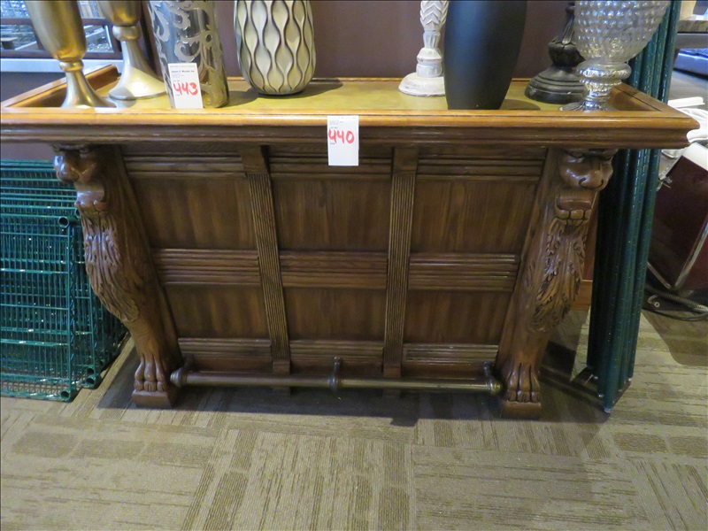 60"W X 38"H X 28"L CARVED WOOD DECORATIVE BAR W/BRASS FOOT REST