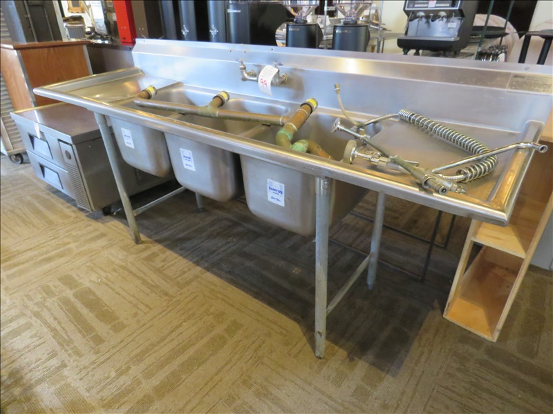 90" 3-COMPARTMENT SS DEEP SINK W/PRERINSE WAND