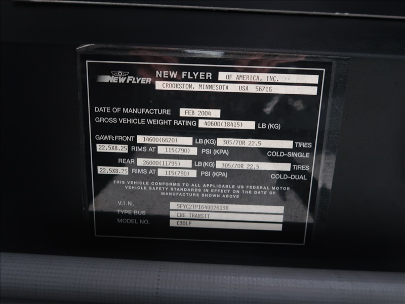 25-PASSENGER BUS, C30LF CNG (NO FARE COLLECTORS, RADIOS OR DRIVERS CAMERA)