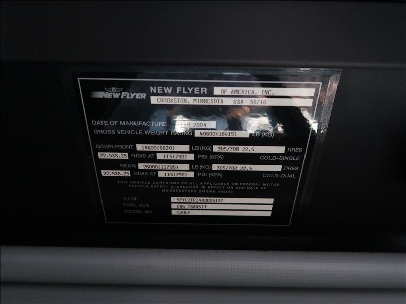 25-PASSENGER BUS, C30LF CNG (NO FARE COLLECTORS, RADIOS OR DRIVERS CAMERA)