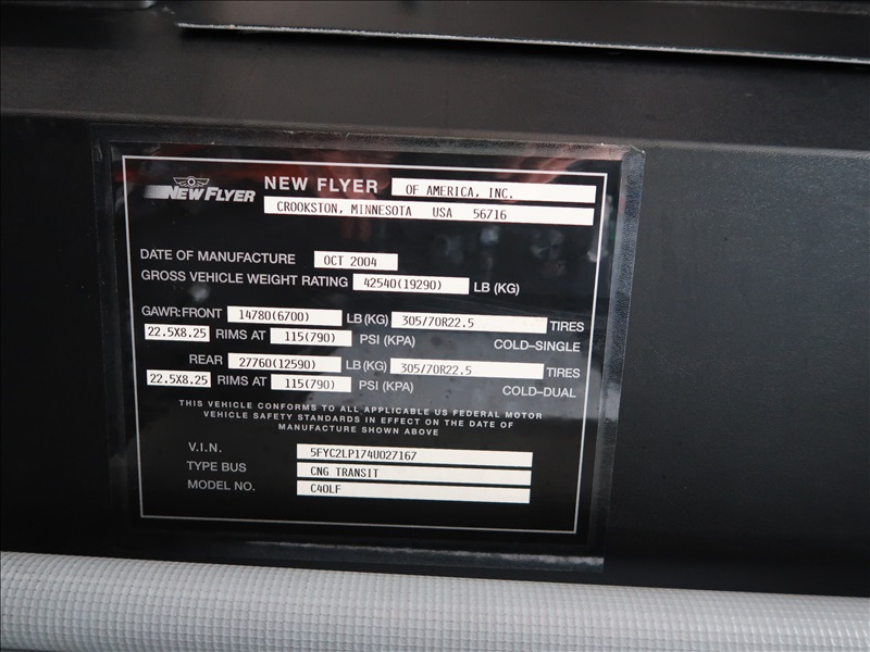 39-PASSENGER BUS, C40LF CNG (NO FARE COLLECTORS, RADIOS OR DRIVERS CAMERA)