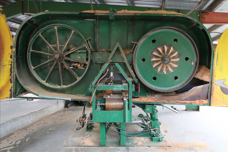 54" HORIZONTAL BAND RESAW W/HYDRAULIC STRAIN, TILTING BED, FEED THRU ROLLS & AIR HOLD DOWN ROLLS, (18) 29'-1-1/2" X 6" X .049", (8) 24'-4-1/2" X 6" X .049" & (16) 24'-4" X 6" X .042" SPARE BANDSAWS (NOT INSTALLED, LOCATED IN KETTLE FALLS, WA)