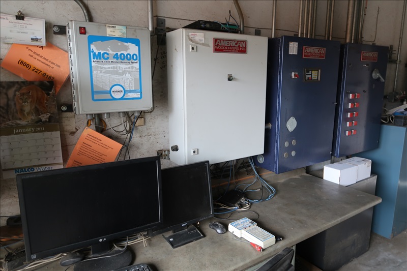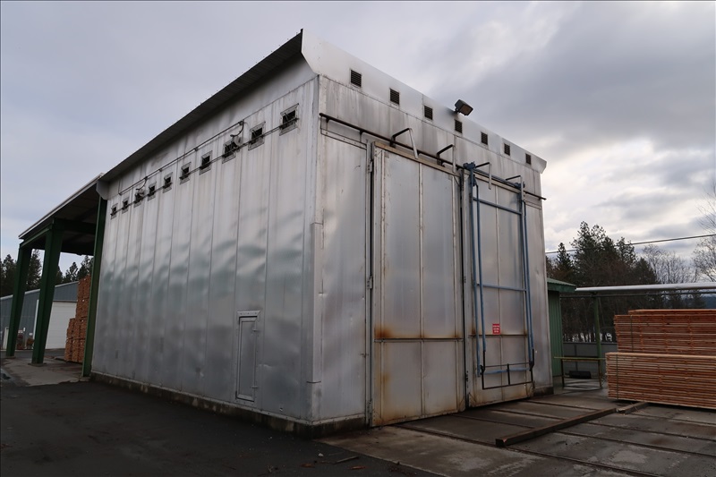 32'X44' STEAM FIRED DOUBLE TRACK KILNS, BOLT TOGETHER ALUMINUM CONSTRUCTION W/10'X19' DOORS, (8) INDIVIDUALLY MOTORIZED FANS, (1) KILN W/VFD'S, SHARED WAGNER MC4000 MOISTURE MEASURING SYSTEM W/INDIVIDUAL CONTROLLERS (LOCATED IN KETTLE FALLS, WA)