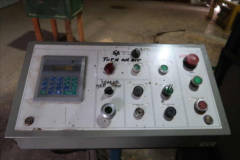 4-STATION COMPRESSION SHAVINGS BAGGER, AUTO SEALER, 118" TUBES, APPROX. 11"X17"X40" BAGS, 30 HP HYDRAULIC UNIT, TOUCHSCREEN CONTROLS, APPROX. 16"X20' INFEED SCREW AUGER (FROM SCREEN) W/SEW 5 HP/27 RPM GEARHEAD MOTOR, MAX 3W020-36 2,000 LB. CAPACITY, 42"X28" HYDRAULIC OPERATED SCISSOR LIFT (LOCATED IN KETTLE FALLS, WA)