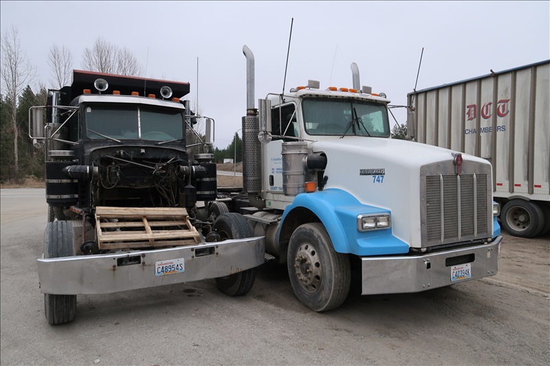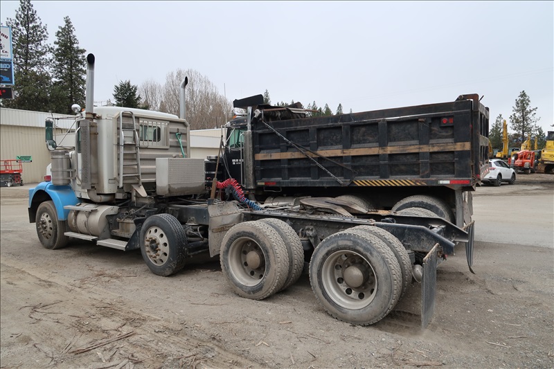 TANDEM AXLE TRACTOR, CAT C15 475 DIESEL ENGINE, EATON 15-SPEED TRANSMISSION, WET KIT, PTO, PROTECH ALUMINUM HEADACHE RACK, ALUMINUM STACKS, DUAL ALUMINUM FUEL TANKS W/STEPS, 10-HOLE ALUMINUM WHEELS (LOCATED IN ARDEN, WA)