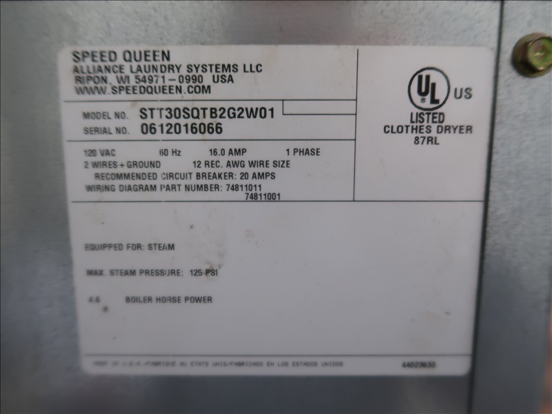 DUAL STACK COMMERCIAL DRYER UNIT, 4 SECTION HEAT CONTROLS, 120 VAC, 60HZ, 16A, SINGLE PHASE