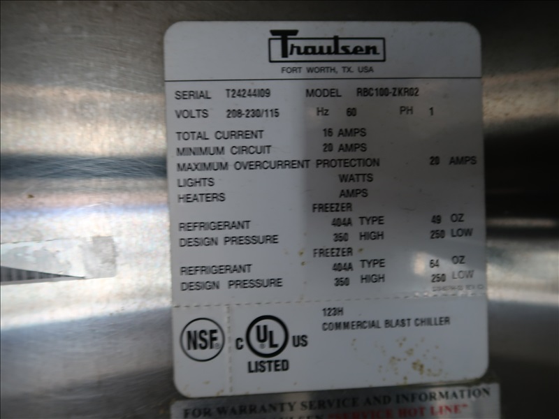 34" S/S COMMERCIAL BLAST CHILLER W/TRAULSEN ELECTRONICS, 208-230/115V, 60 HZ, SINGLE PHASE