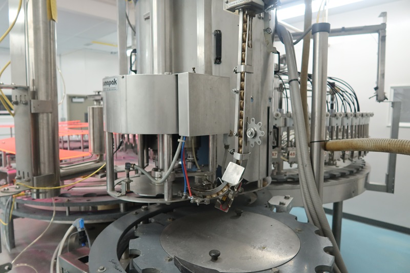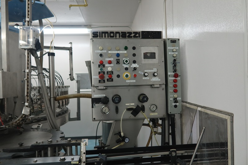 64-HEAD PET ROTARY BOTTLE FILLING LINE, 8' ROTARY TABLE W/NITROGEN BLAST FEED & WATER FILLER SYSTEM, ZALKIN CAP SINGULATOR, NEWMARK BOTTLE CAPPER, VAC-U-MAX VACUUM SYSTEM, PHOTO SWITCH LASER FEED SPEED REGULATING SYSTEM, SIMONAZZI CUSTOM CONTROL CENTER, NITRO DOSE SYSTEM VPC NITRO DOSER MS NITROGEN CONTROL PANEL, 380V, 60KHZ, 3-PHASE