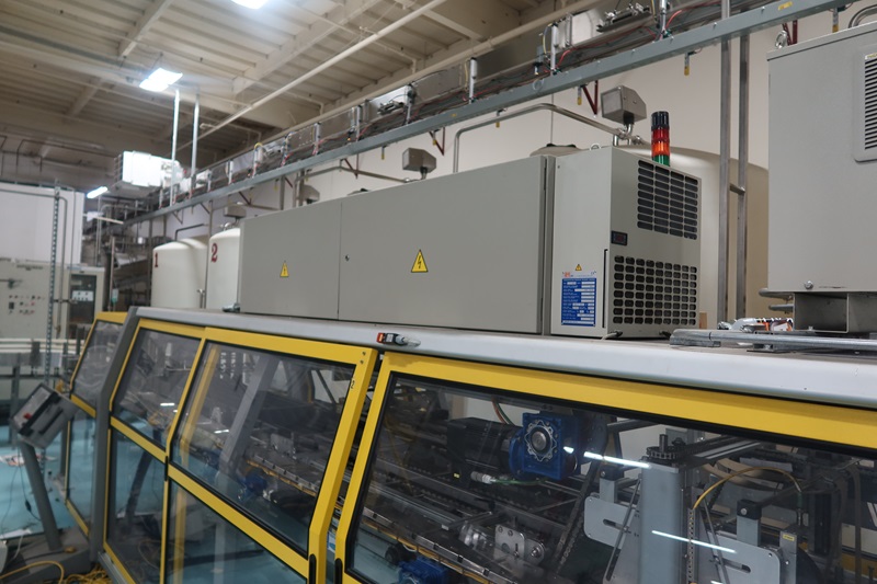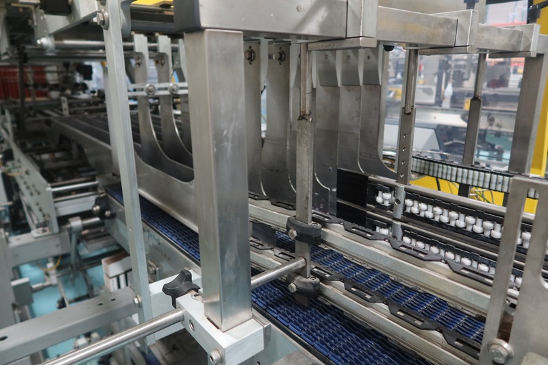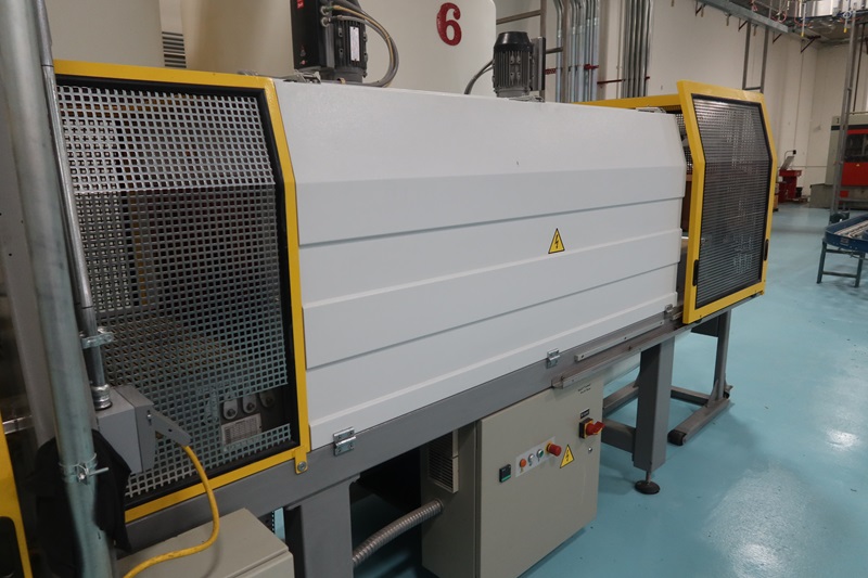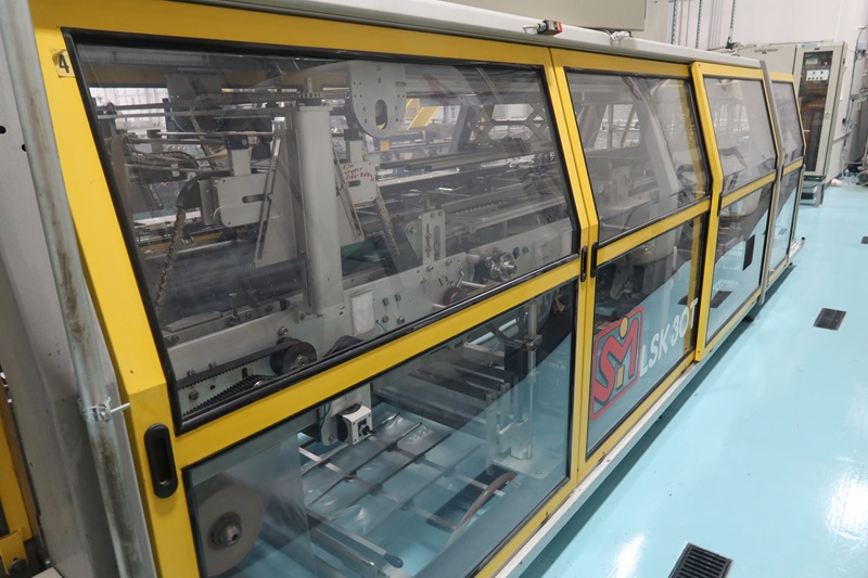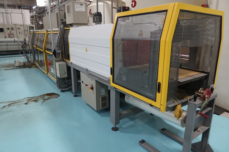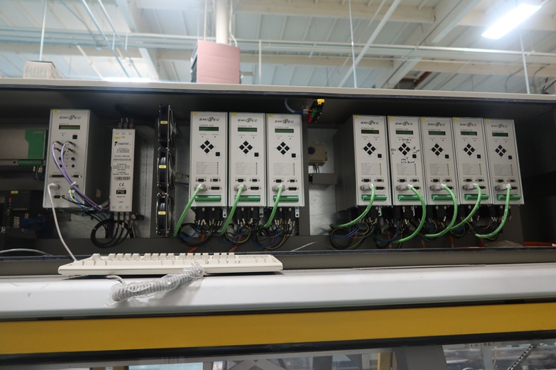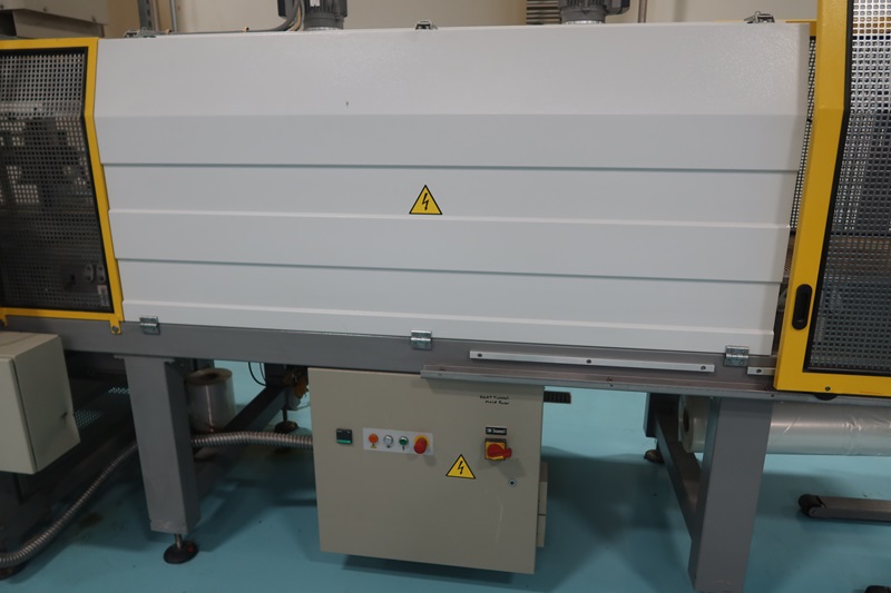 TRAY FORMER W/SHRINK WRAPPER TUNNEL, 6-LANE 9' INFEED BELT, SMI 9150 COOLING UNIT, 7'X2' TRAY INFEED CONVEYOR, NORDSON 3100V GLUER, 6' HEAT SHRINK TUNNEL W/GEFRAN800 CONTROLS & 24" WIDE BELT, SMI TECH POSYC3000 MAIN CONTROLS