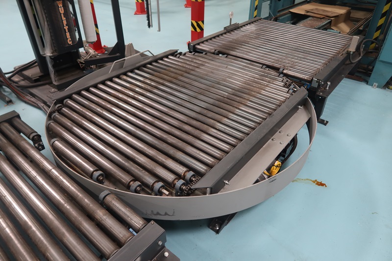 ROTARY SHRINK/STRETCH WRAP MACHINE, 787" ROTARY TABLE W/POWER ROLLER CONVEYOR, 63"X52" POWER INFEED CONVEYOR, 63"X52" POWER OUTFEED CONVEYOR, ALLEN BRADLEY PANEL VIEW PLUS 600 CONTROLS, AUTO-LUBE SYSTEM, 230V, 3-PHASE