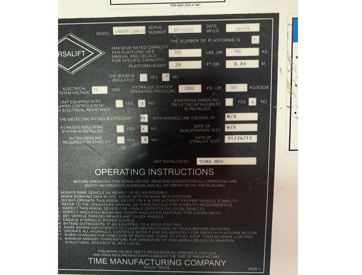 CARGO VAN W/VERSALIFT VANTEL 29N-01 29' REACH, 5.4L GAS