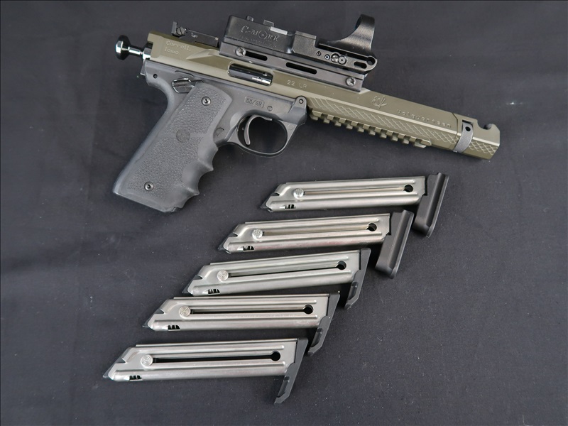 .22 LR PISTOL W/C-MORE SYSTEMS ELECTRONIC RED DOT SCOPE, (6) MAGAZINES & CASE