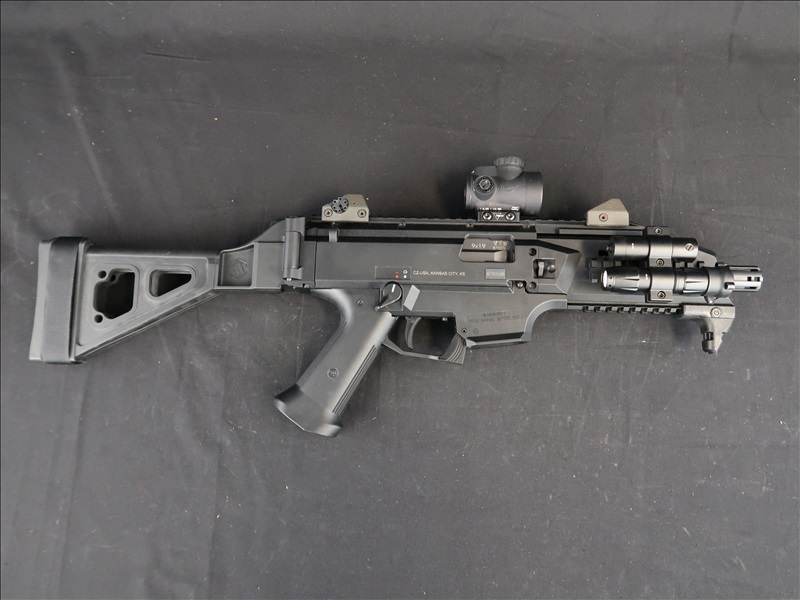 9X19 RIFLE W/TRIJICON RED DOT, LASER, LIGHT, & FOLDING STOCK (NO MAGAZINE) (CLASSIFIED AS PISTOL)
