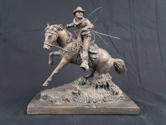 "LASOING HORSEMAN" BRONZE SCULPTURE