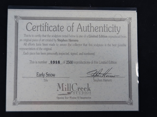 "EARLY SNOW" SCULPTURE SIGNED BY STEPHEN HERRERO 0986/2500 W/CERTIFICATE OF AUTHENTICITY