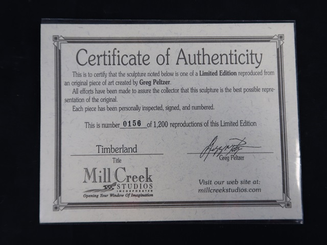"TIMBERLAND" SCULPTURE SIGNED BY GREG PELTZER 0156/1200 W/CERTIFICATE OF AUTHENTICITY