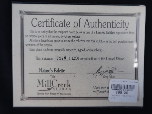 "NATURE'S PALETTE" SCULPTURE SIGNED BY GREG PELTZER 0188/1200 W/CERTIFICATE OF AUTHENTICITY