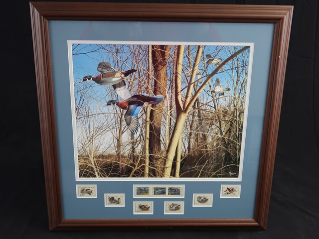 "TIGHT QUARTERS" PRINT W/STAMPS BY DAVID MAASS, 22-1/2" X 22-1/2"