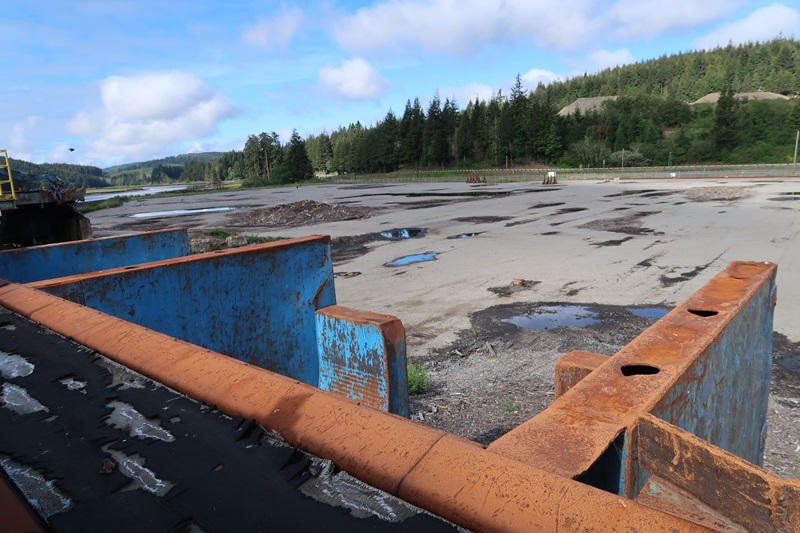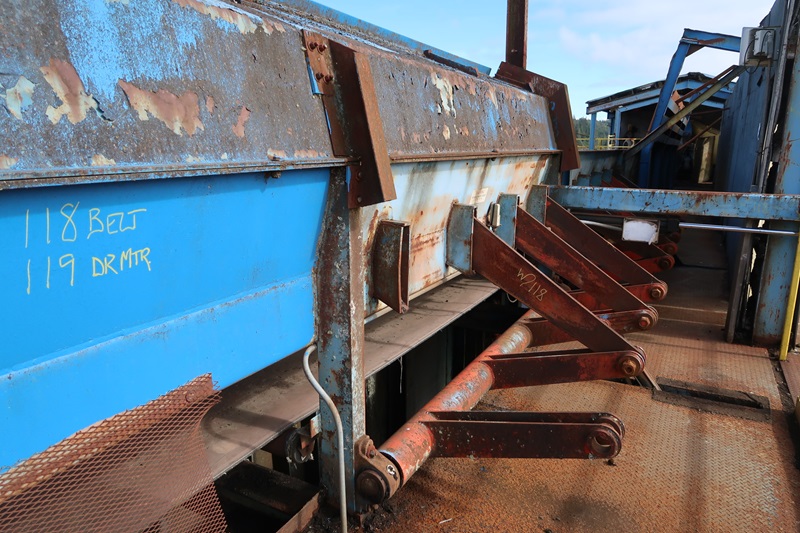 APPROX 24"X120' OUTFEED CONVEYOR (FROM DEBARKER) W/LOG STOP GATE, 4 & 5-ARM LOG KICKERS TO (2) SORT BINS, 3,750 PSI ACCUMULATOR BY LOT 143 BELOW