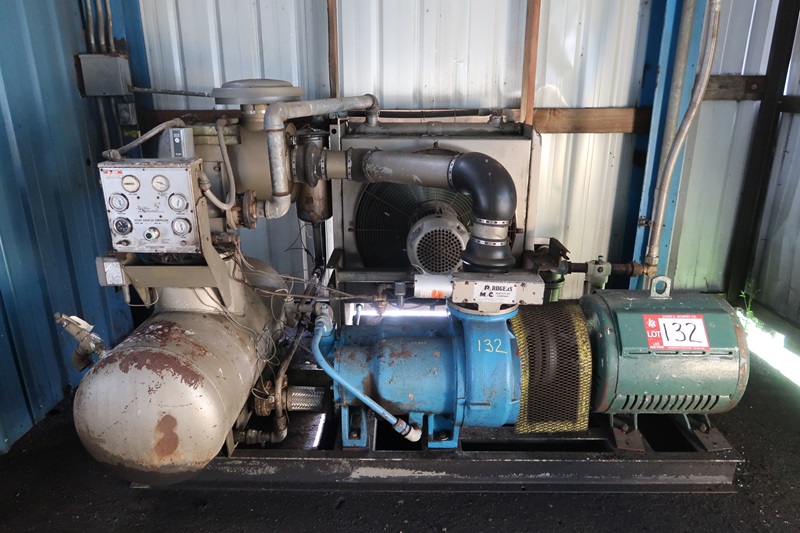 ROTARY SCREW COMPRESSOR, 100 HP MOTOR, AIR COOLED, HOUR METER READS: 6,186 (PIPING SOLD W/LOT 113)