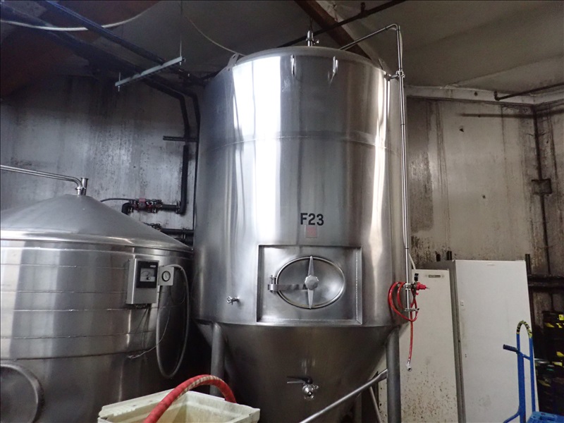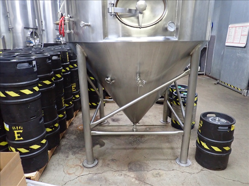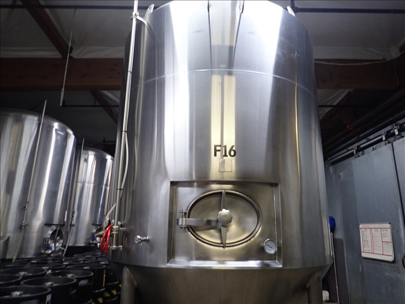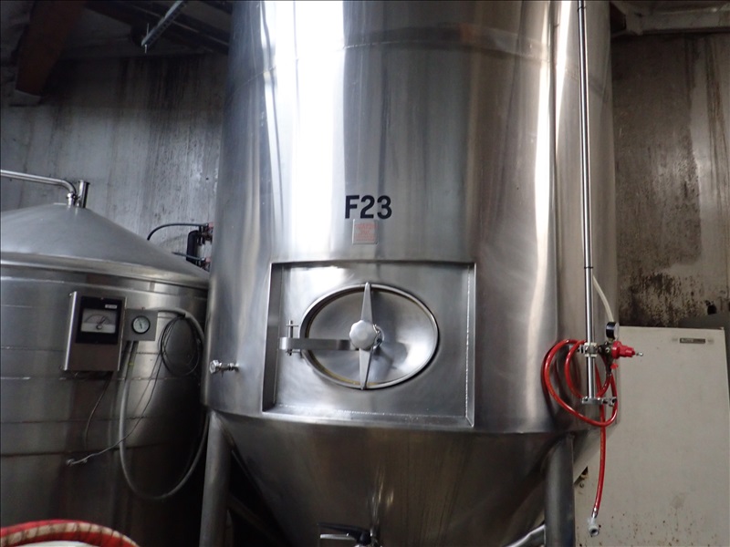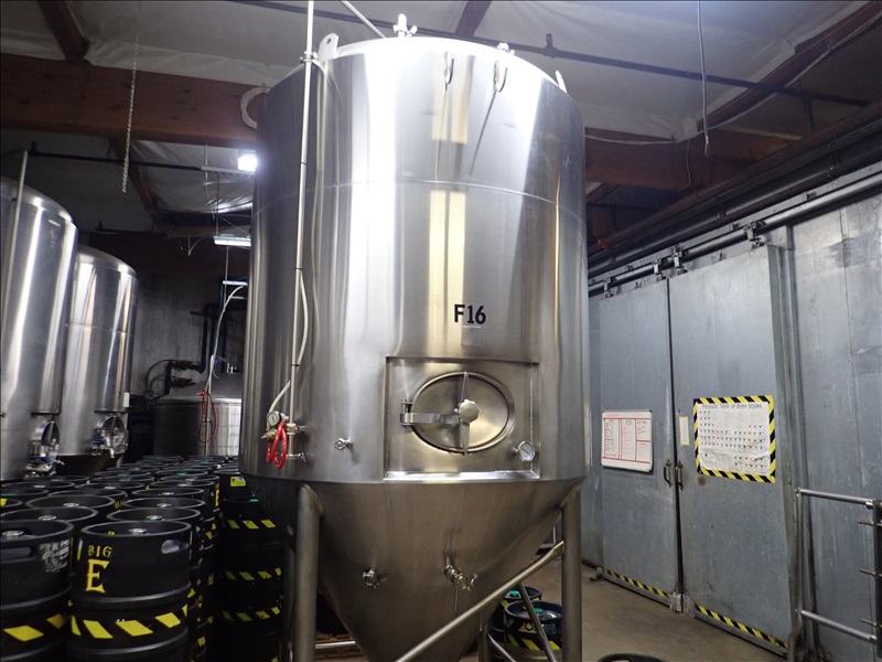 (2) INTERIOR STAINLESS APPROX. 20 BARREL S/S JACKETED FERMENTATION TANKS