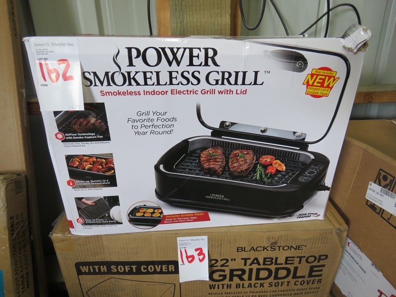 POWER SMOKELESS INDOOR ELECTRIC GRILL W/HINGED LID & GRIDDLE PLATE