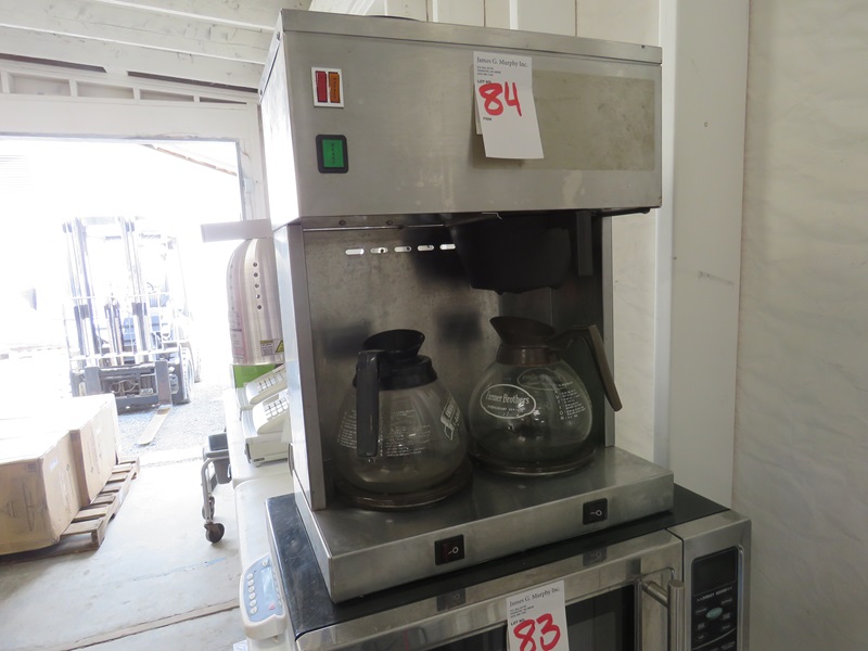 SINGLE POT COFFEE BREWER W/(2) BURNERS & (2) COFFEE POTS