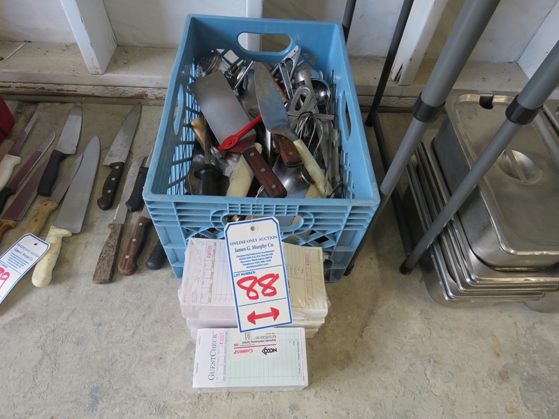 LOT, ASSORTED KITCHEN UTENSILS & ORDER FORMS IN THIS BIN