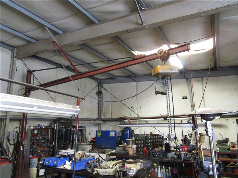 SHOP BUILT PEDESTAL JIB, 360 DEGREE W/INGERSOLL RAND 1 TON HOIST