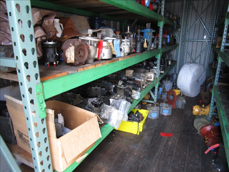 20' SHIPPING CONTAINER W/ASSORTED HYDRAULIC MOTORS, VALVES & DRIVES