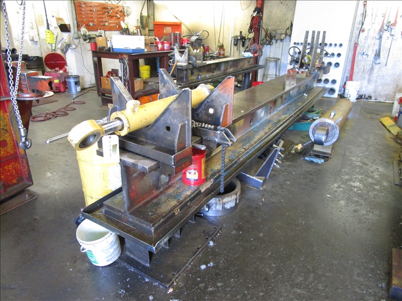 (2) SHOP BUILT 16' HYDRAULIC CINDER WORK/TEST BENCHES W/HYDRAULIC PUMP