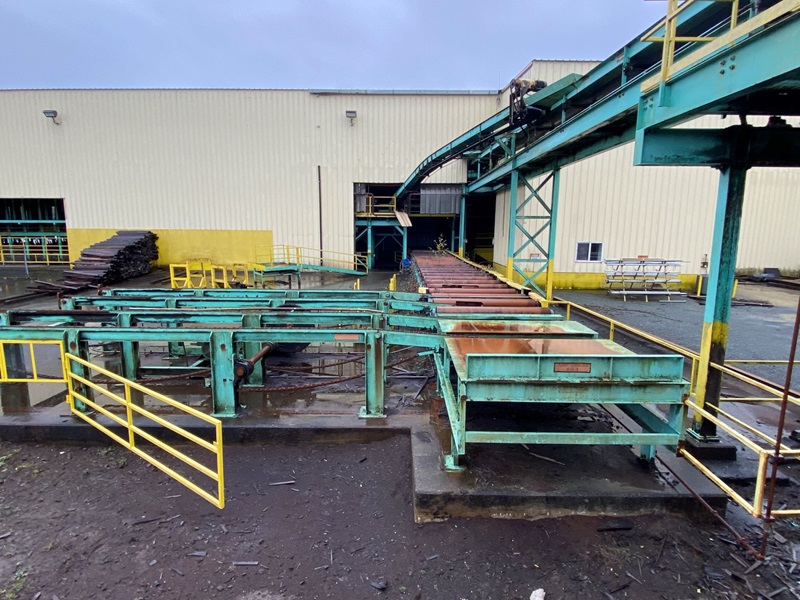 24' RH HYDRAULIC OPERATED STACKER W/6-ARM X 60" LUMBER LOWERING HOIST, (6) LUMBER PLACING ARMS W/RAKE OFF, (5) LATH MAGAZINES W/48" LATH, 9' 6-STRAND 81X INFEED TRANSFER, 12' 10-STRAND UNSCRAMBLER, 15' 6-STRAND 81X INFEED TRANSFER, 30' 5-STRAND 81XH OUTFEED TRANSFER W/20' JUMP ROLLCASE W/(6) 60" ROLLS, ALL DRIVES, HYDRAULIC UNIT W/(2) 40 HP MOTORS, SUPPORT CONTROLS & ELECTRICS (PLANER MILL)