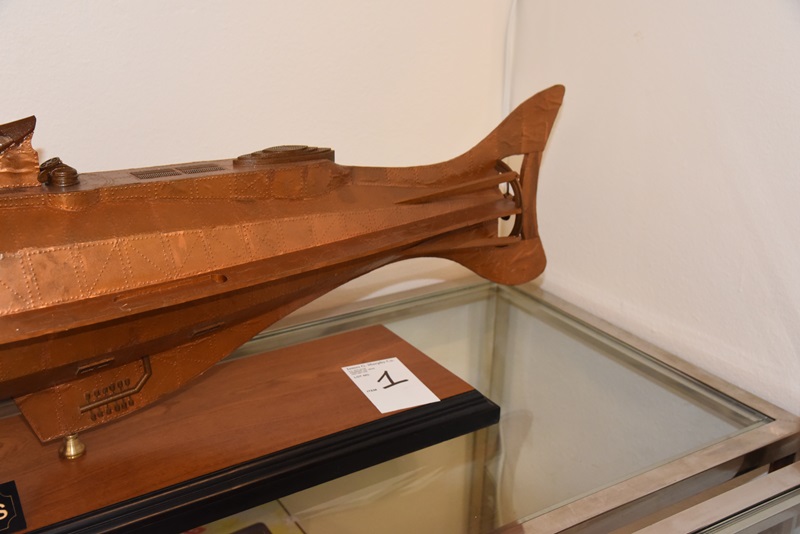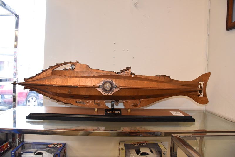 Nautilus Model from “20,000 Leagues Under The Sea” - Wooden handcafted model with Copper Sheathing Approx. 52" L x 9" W x 14" H. . Already built. Not a kit.