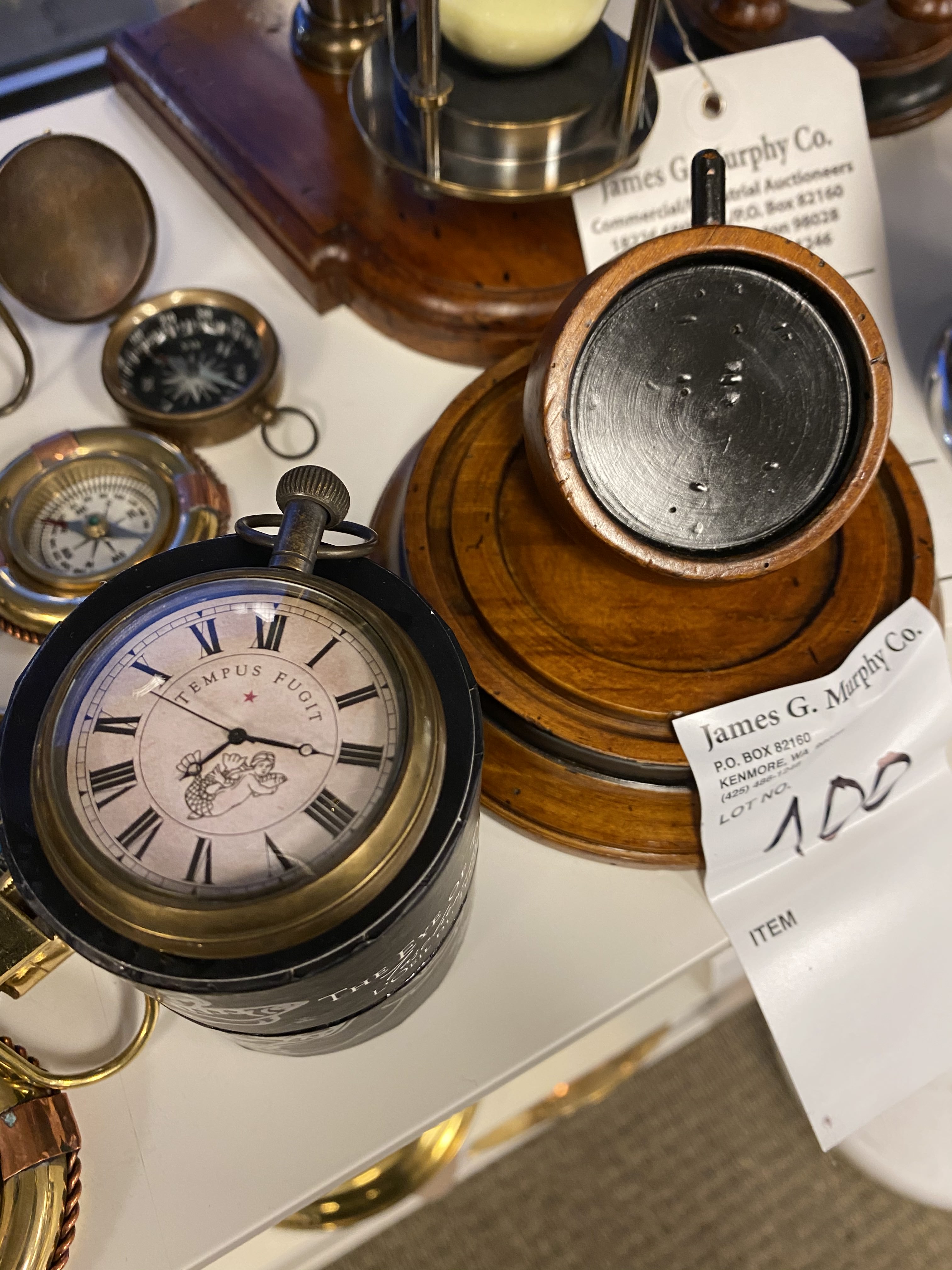 Clock on round wooden base Approx. 5.5" Dia x 5" H