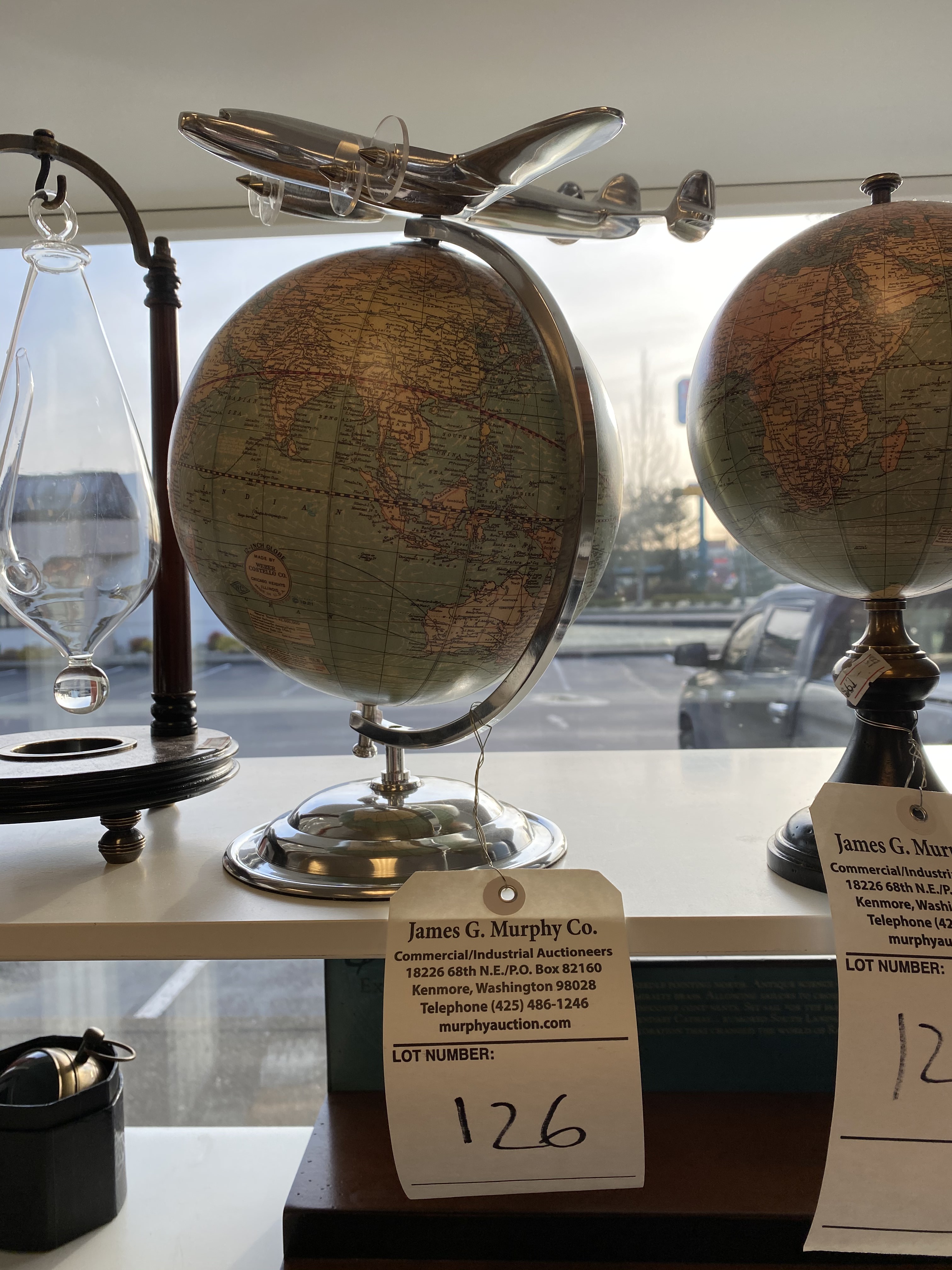 Globe approx. 8" Dia with airplane on top approx. 12" tall