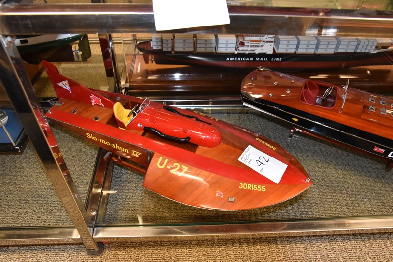Slo-mo-shun IV (U27) Approx. 30" L x 12.5" W x 8.5" H. Scale 1:12. Already built. Not a kit.