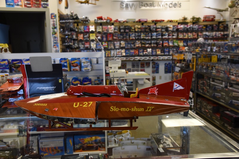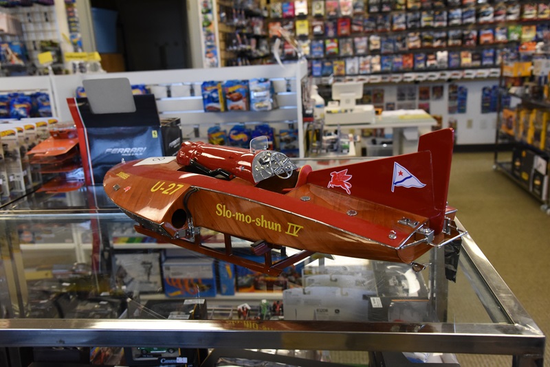 Slo-mo-shun IV (U27) Approx. 30" L x 12.5" W x 8.5" H. Scale 1:12. Already built. Not a kit.
