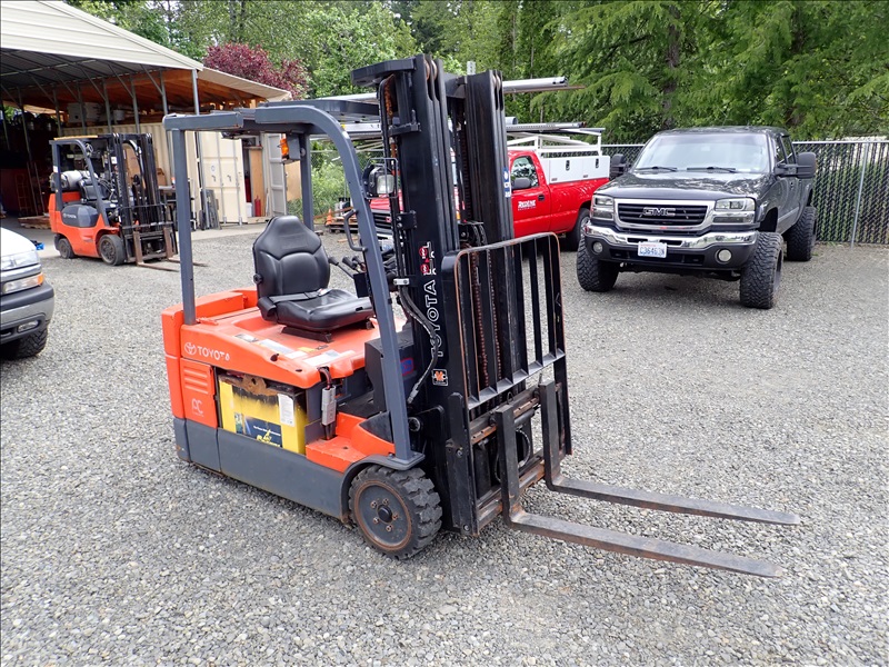 3,450 LB HRT 3-WHEEL ELECTRIC FORKLIFT, 3-STAGE MAST, SIDE SHIFT W/CHARGER (MAST DOES NOT TILT), HOUR METER READS: 12,879
