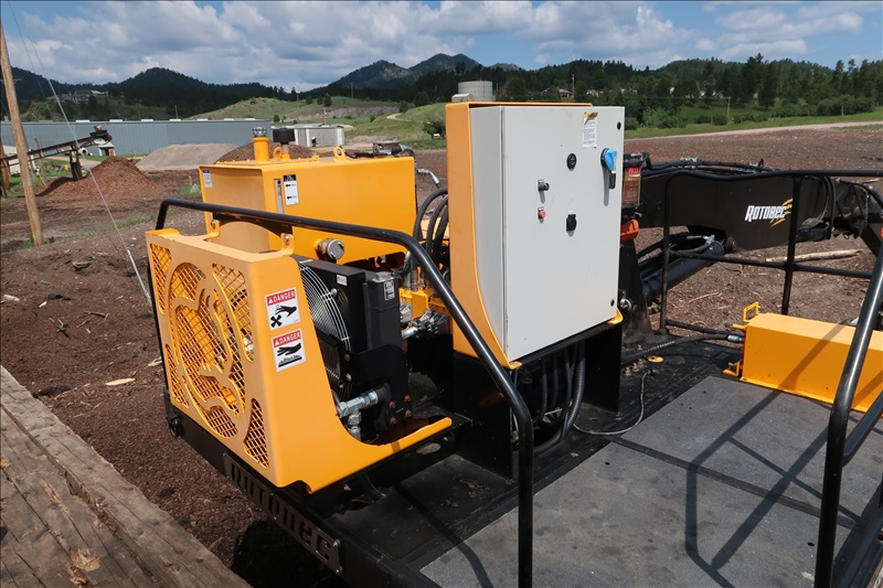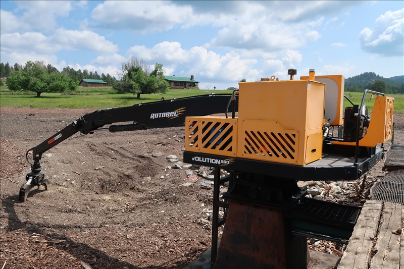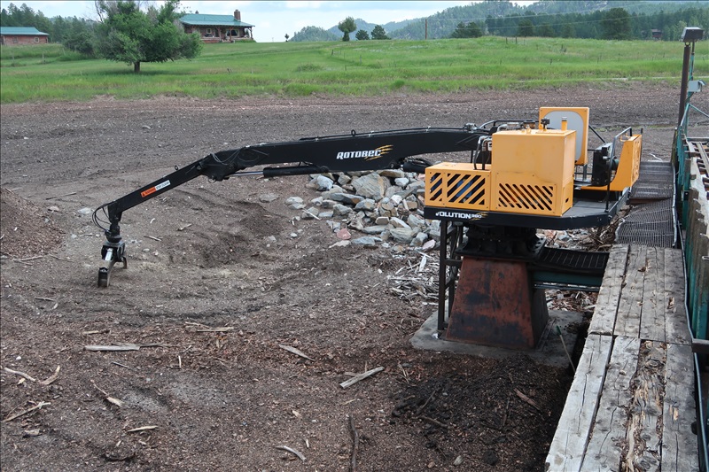 HYDRAULIC OPERATED PEDESTAL MOUNT LOG LOADER, APPROX. 50 HP MOTOR W/PUMP, 4042HD SWIVEL GRAPPLE, REMOTE OPERATED