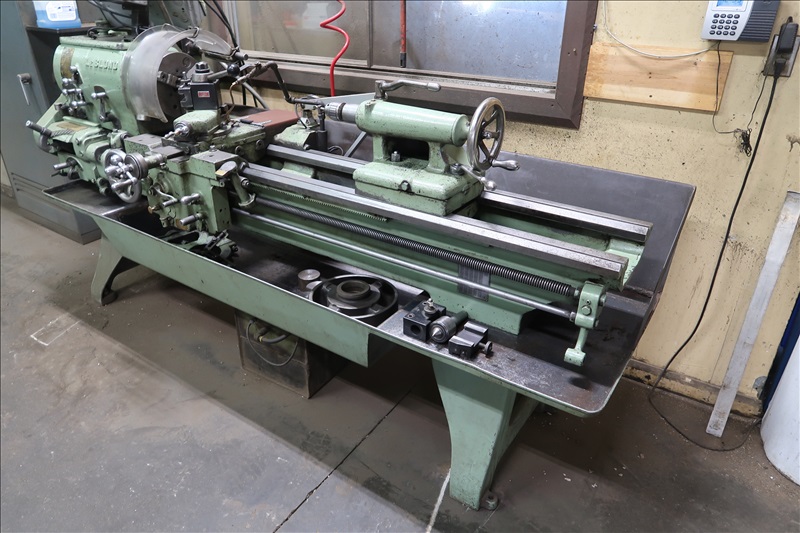 APPROX. 18"X48" ENGINE LATHE W/1-1/2" THRU HOLE, 20-425 RPM SPINDLE SPEEDS, 3 & 4-JAW CHUCKS, STEADY REST, TOOL POST, TAIL STOCK, THREADING