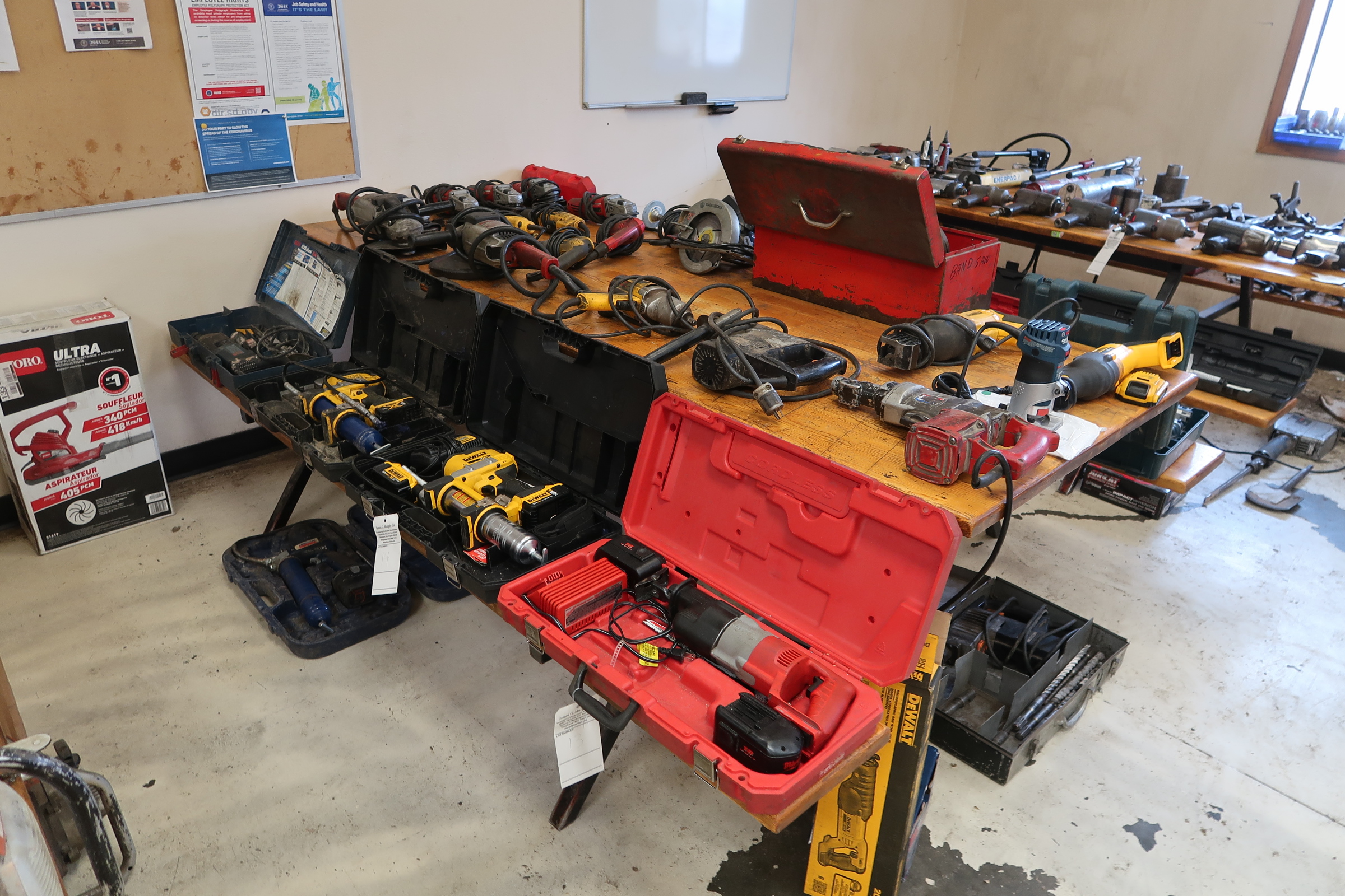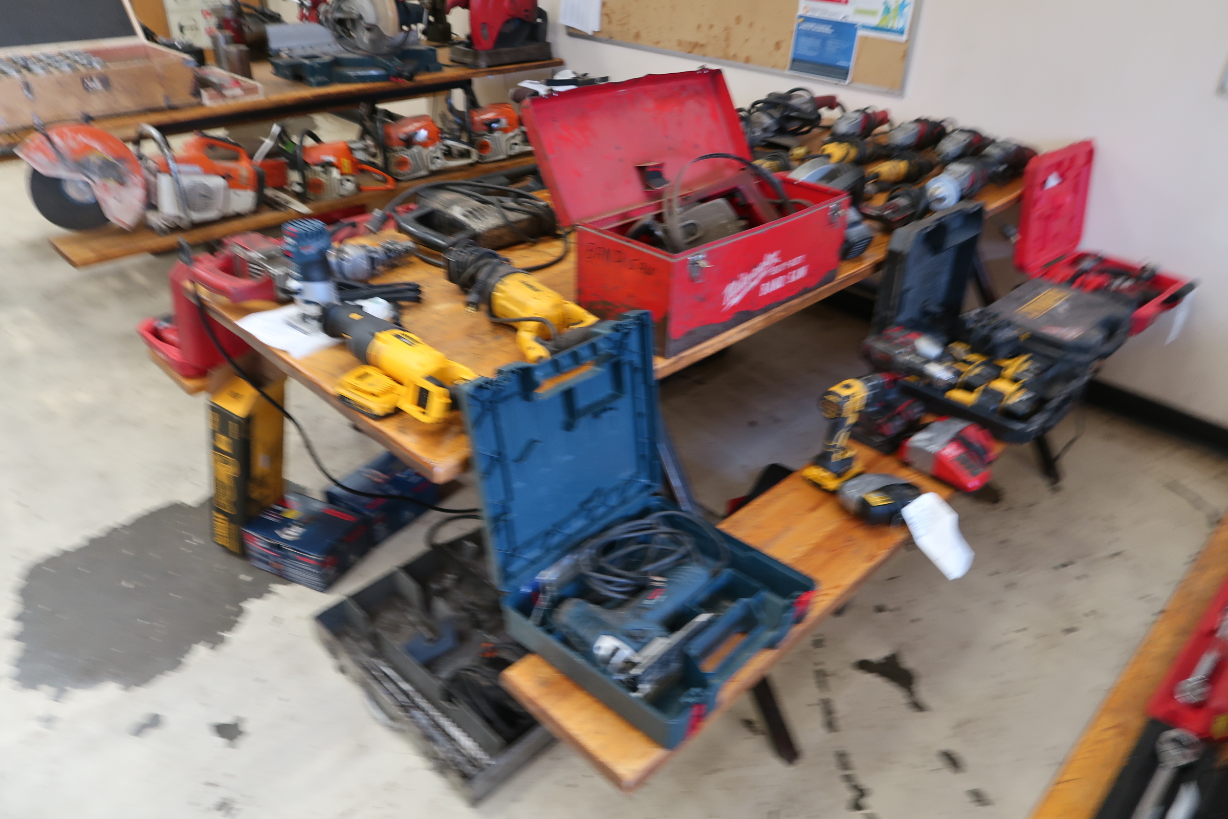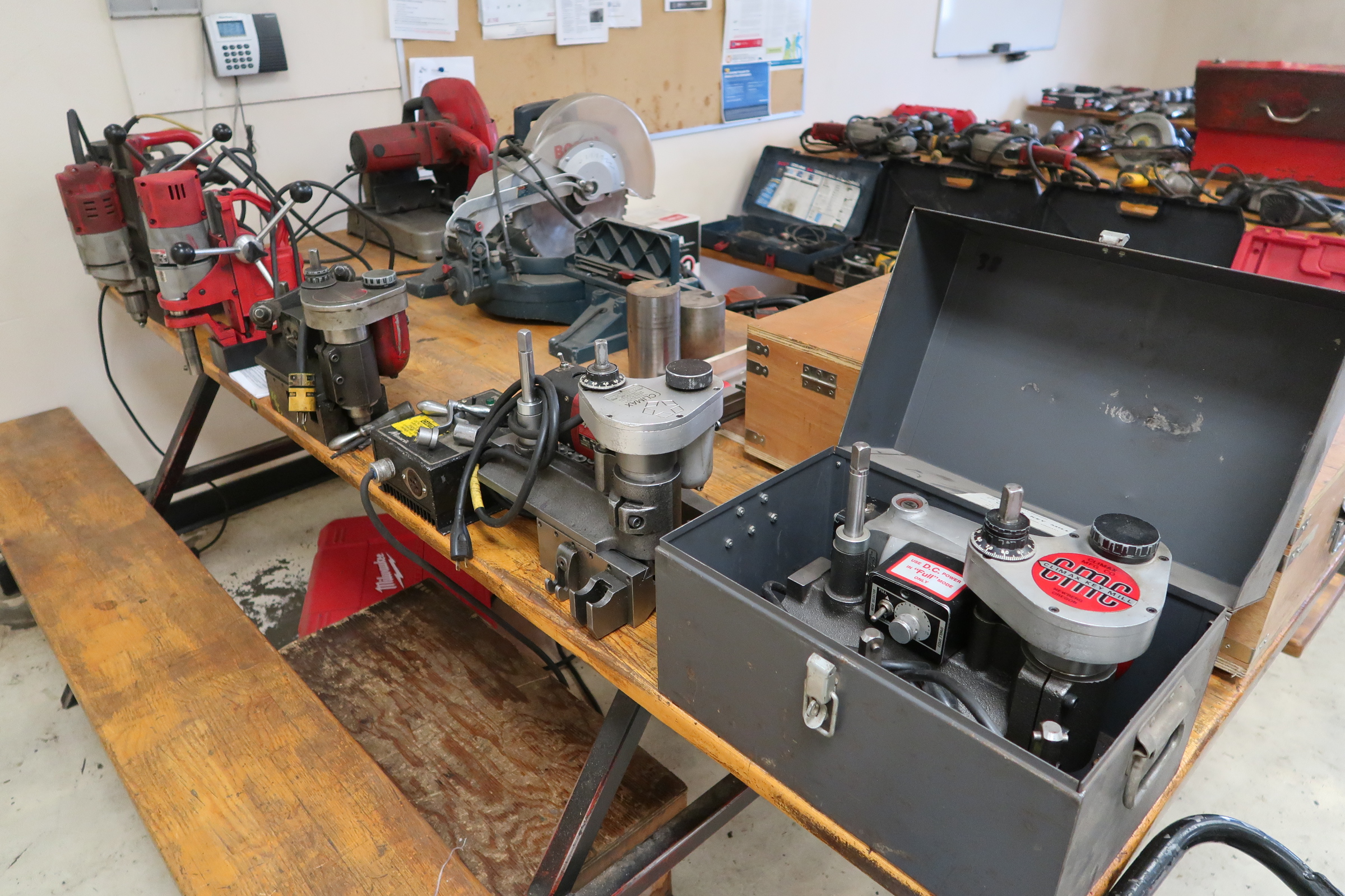 (3) CLIMAX NO. 65 KEYWAY CUTTERS; MILWAUKEE & JANCY MAG DRILLS; BROACH SET; (2) RIDGID 300 PIPE THREADERS; RIDGID 884 HYDRAULIC PIPE BENDER; GREENLEE NO. 665 POWER PULLER; MANUAL BENDERS; STEAM CLEANER; PRESSURE WASHERS; GAS OPERATED CHOP SAWS, CHAINSAWS,