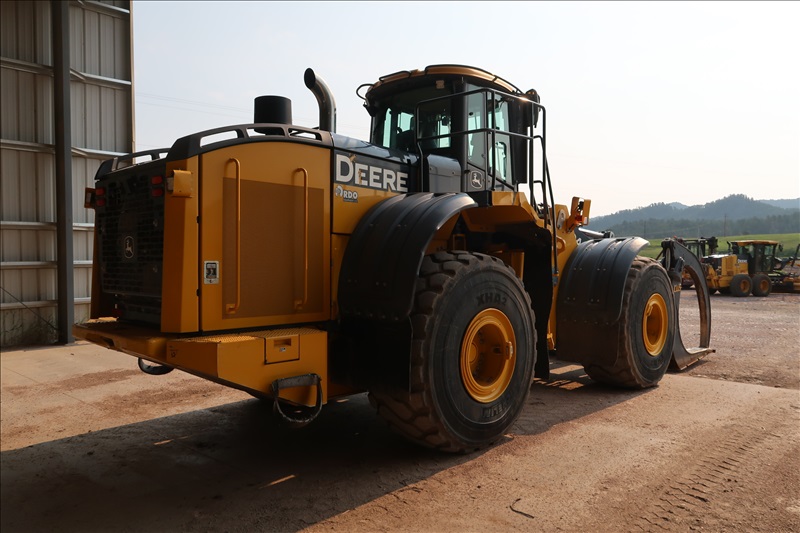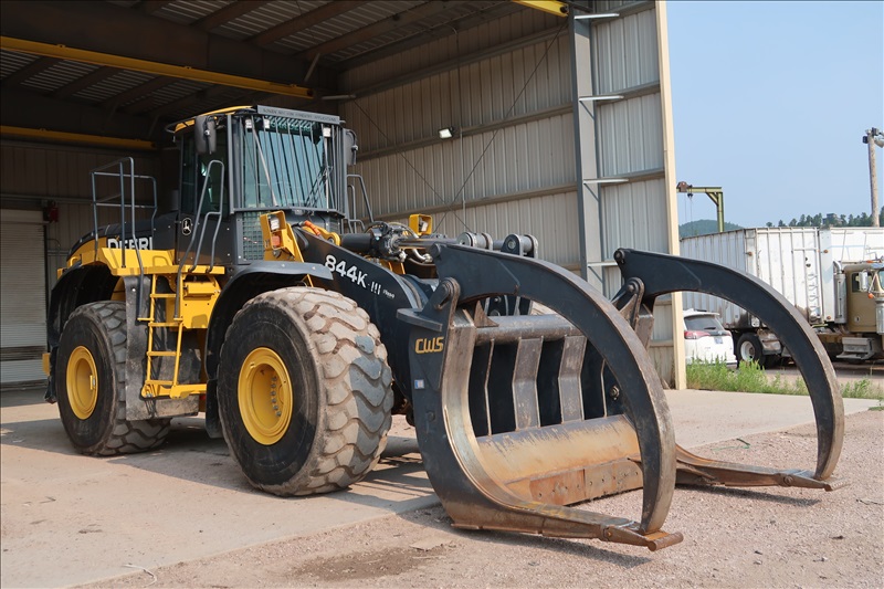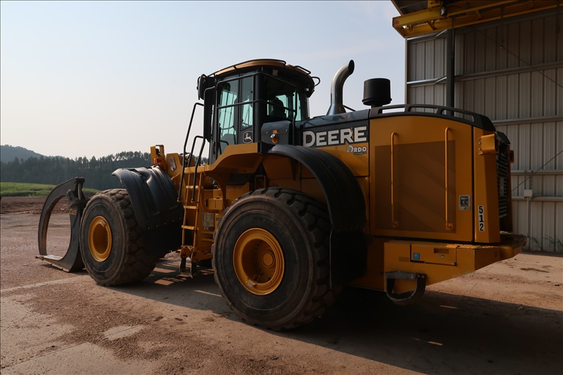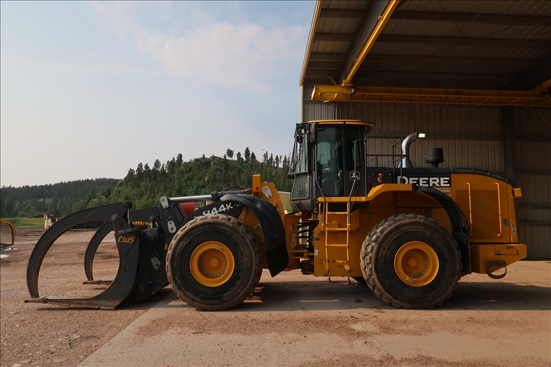RUBBER TIRE LOG LOADER W/CWS LOG FORKS, JOHN DEERE DIESEL ENGINE, CAB GUARDS, 29.5-25 TIRES