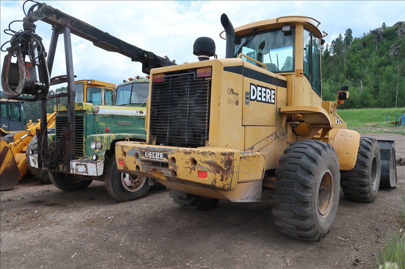 RUBBER TIRE LOG LOADER W/GP 8' BUCKET, JOHN DEERE DIESEL ENGINE, 20.5-25 TIRES