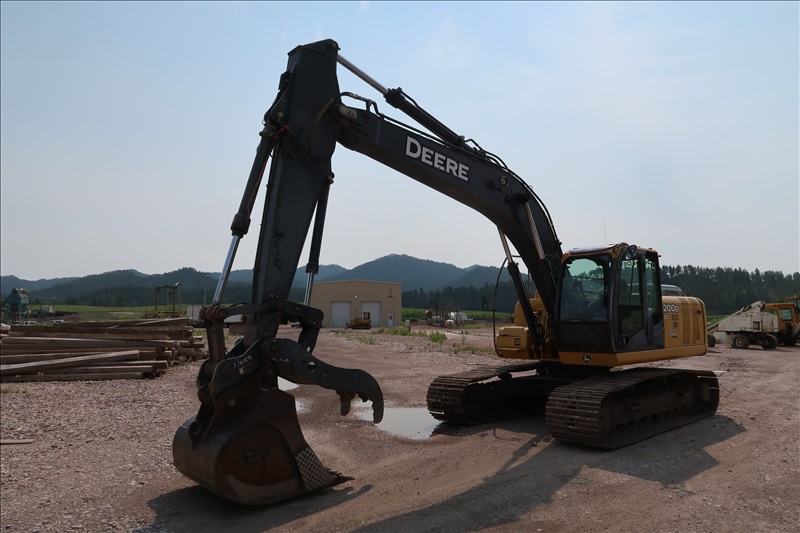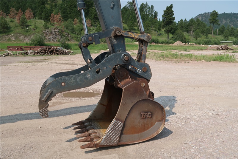 EXCAVATOR, JOHN DEERE ENGINE, 44" BUCKET W/THUMB, WB 42" RAKE ATTACHMENT, 31-1/2" TRIPLE GROUSER TRACKS