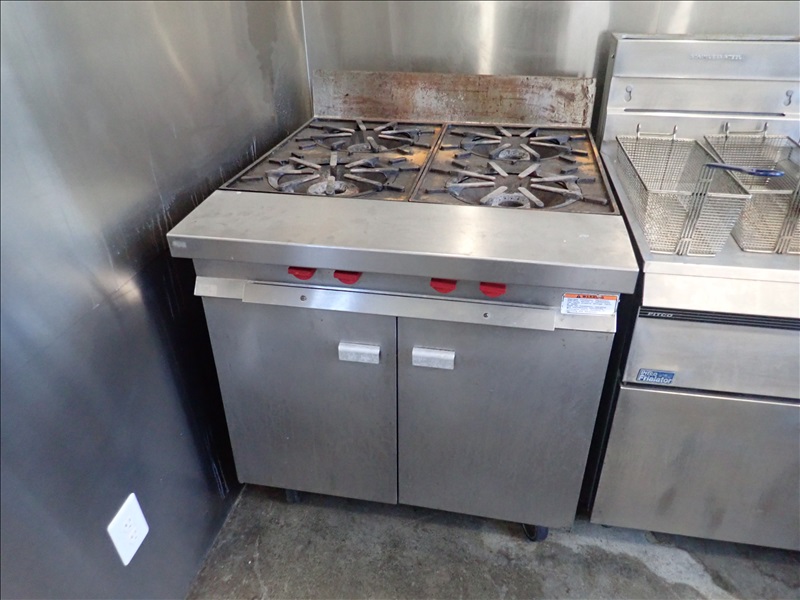 34" 4-BURNER GAS RANGE W/CABINET ON CASTERS