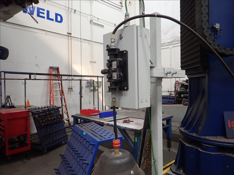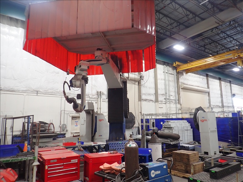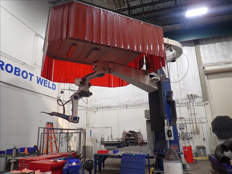 CNC WELDING ROBOT, RSH LIFTING COLUMN, HEADSTOCK MANIPULATOR, TAILSTOCK MANIPULATOR, KUKA CONTROL CABINET, FRONIUS TRANSPULS SYNERGIE 5000 POWER SUPPLY, SICK LASER CURTAINS, MAIN CONTROL, CABINET, ACCESSORIES, S/N: 101415/301420