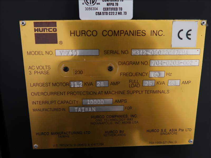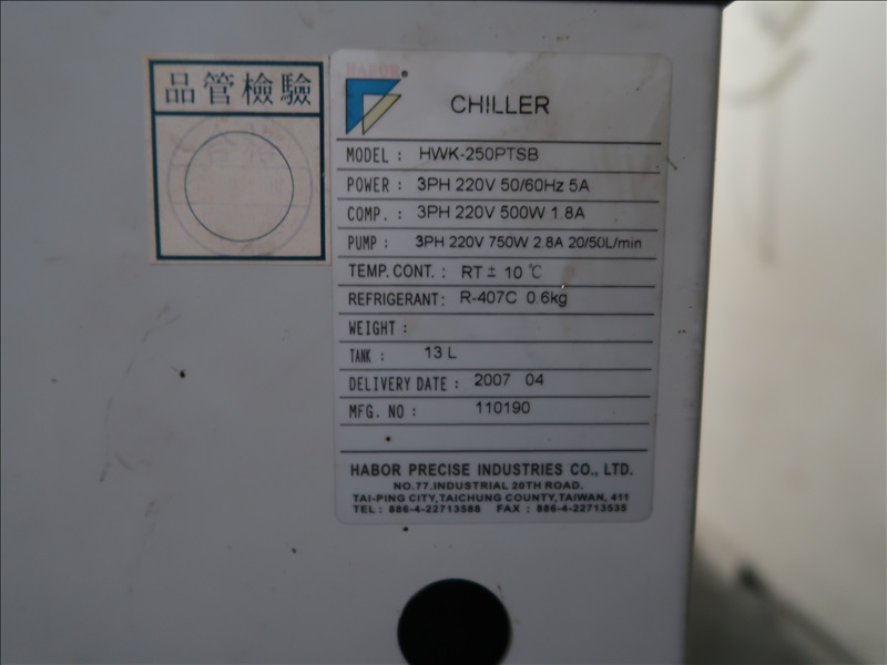 CNC MACHINING CENTER, ULTIMAX CONTROLS, CHIP CONVEYOR, HARBOR HWK-250PTSB CHILLER, 21"X36" VACUUM TABLE