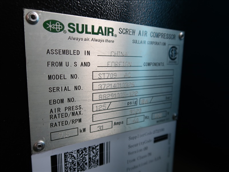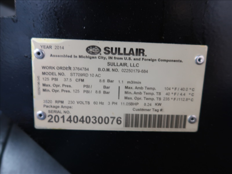 AC SCREW AIR COMPRESSOR, DIGITAL CONTROLS, 125 PSIG AIR PRESSURE, 75KW, 31 AMPS, 60HZ, 230V