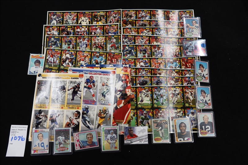 ASSORTED FOOTBALL CARDS: UNCUT SHEETS, STEVE LARGENT, WALTER PAYTON, KEN STABLER