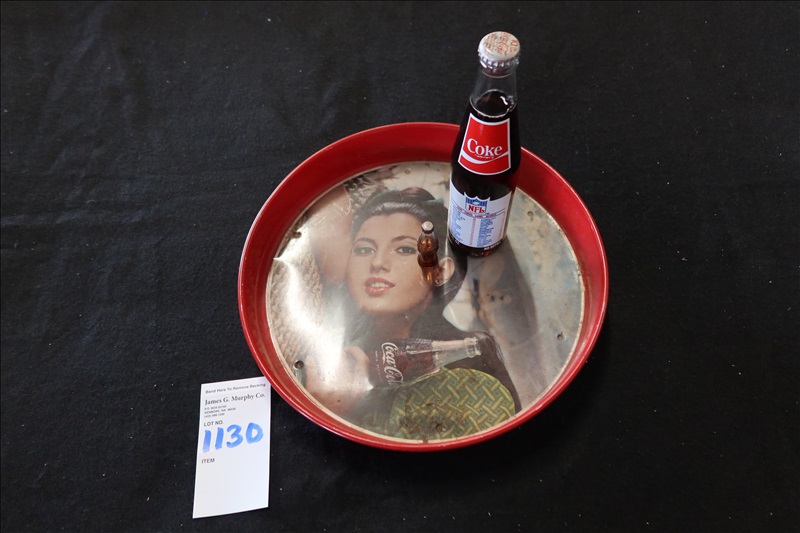 COCA COLA MEXICO TRAY W/BRUNETTE WOMAN, 1984 SUPER BOWL COCA COLA BOTTLE, MINITURE COCA COLA BOTTLE